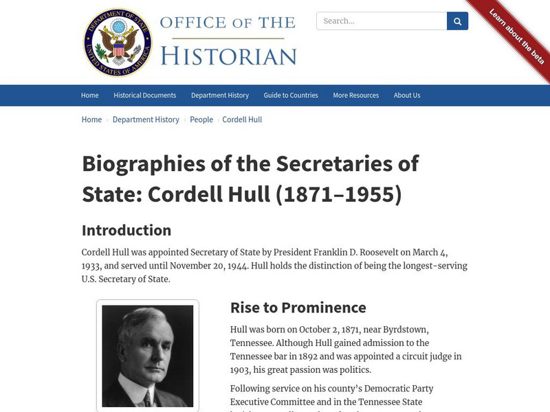 Biographies of the Secretaries of State: Cordell Hull (1871 1955)