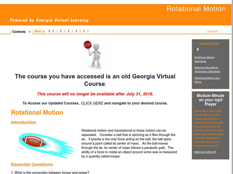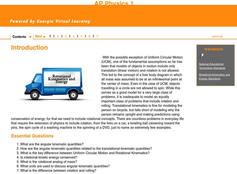 Ga Virtual Learning: Ap Physics 1: Rotational Kinematics and Energy