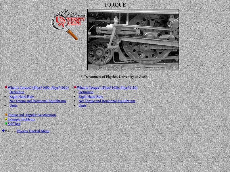 University of Guelph: Physics Tutorials: Torque and Rotational Motion