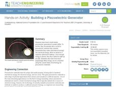 In pairs, learners build a piezoelectric generator from readily available electric components in the second and final installment of the two-part series. Tapping the piezoelectric element produces enough electricity to light an LED....