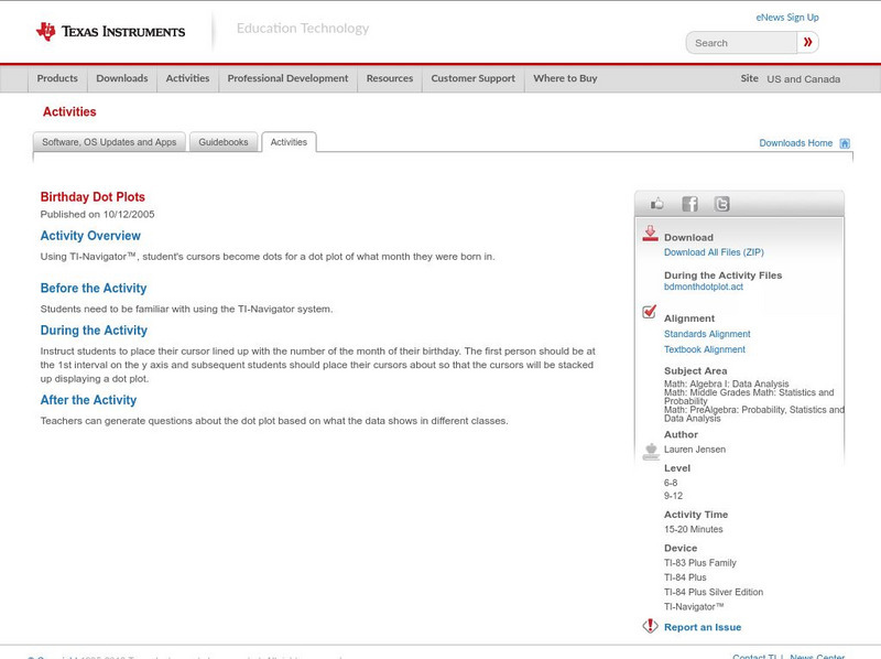 Using TI-Navigator, students' cursors become dots for a dot plot of what month they were born in.