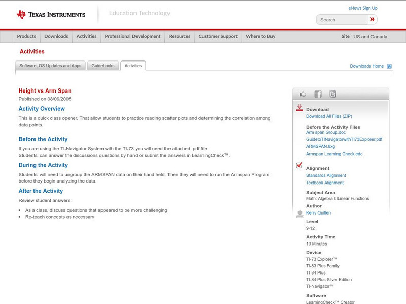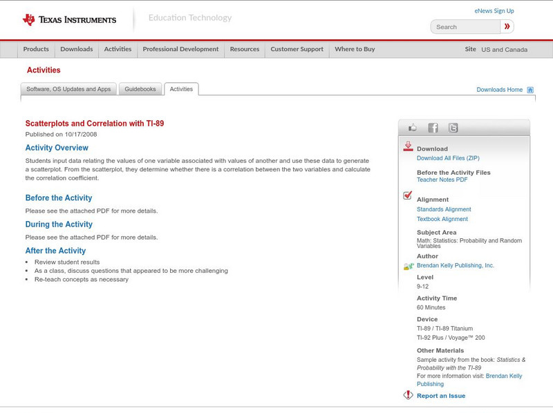 Texas Instruments: Scatterplots and Correlation With Ti 89