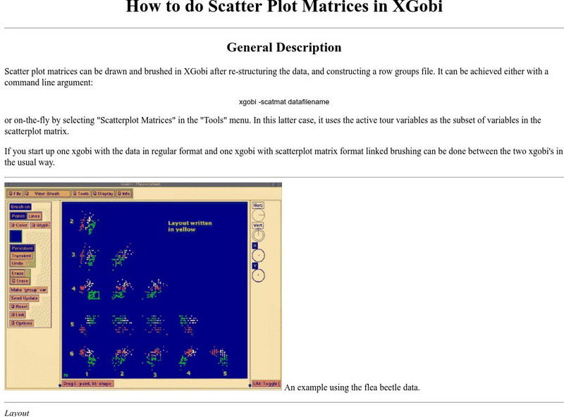 Site explains how the XGobi computer program can be used to plot data in a scatter plot.
