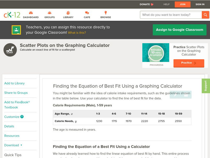 Ck 12: Statistics: Scatter Plots on the Graphing Calculator