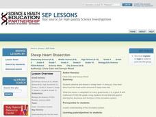 Fifth graders examine a sheep heart. In this biology lesson, 5th graders dissect a sheep heart to identify the parts of a heart including the aorta, valve, septum, and ventricle.