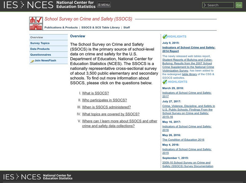 Nces: School Survey on Crime and Saftey (Ssocs)
