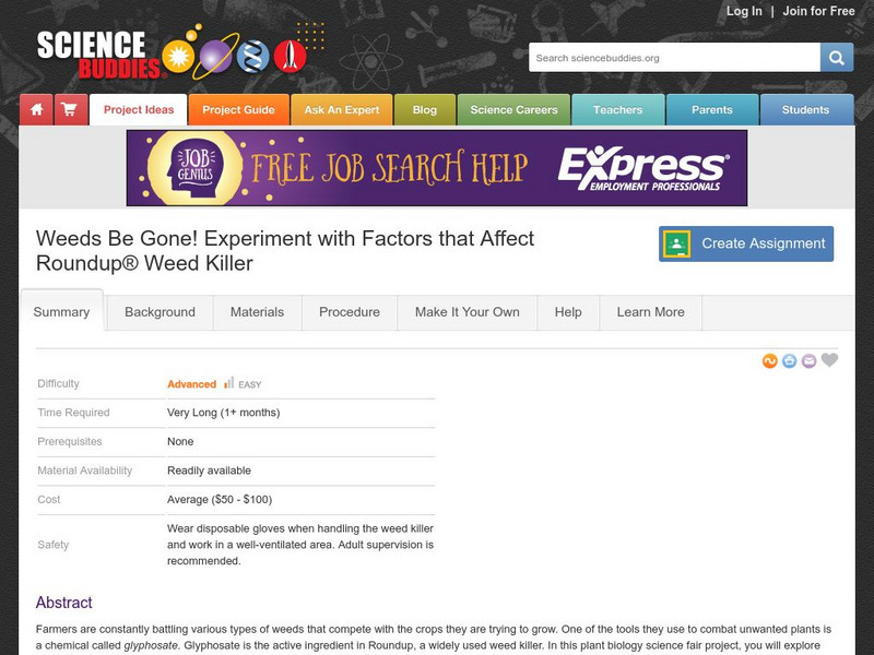 Experiment with factors that affect the activity of the weed killer Roundup. The Science Buddies project ideas are set up consistently beginning with an abstract, objective, and introduction, followed by a section on terms, concepts, and...