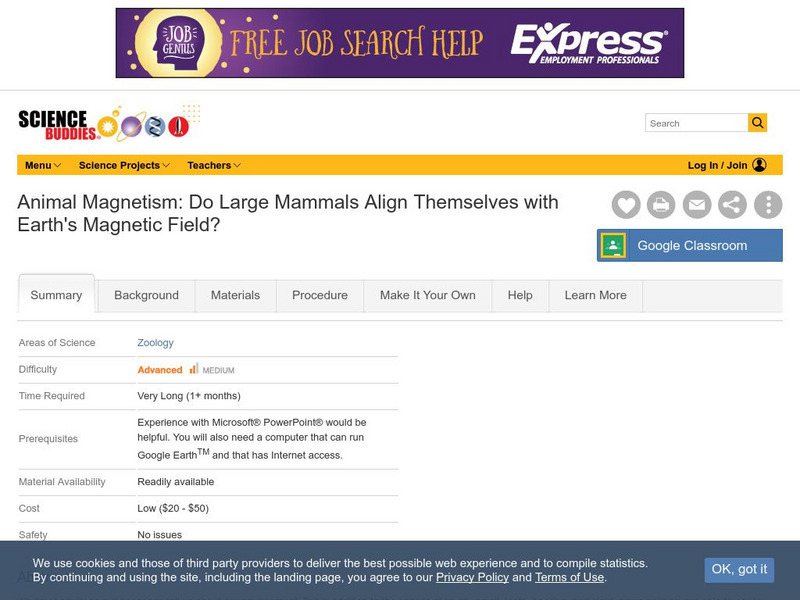 In this science fair project, use Google Earth to determine if large mammals align themselves in respect to the earth's magnetic field. The Science Buddies project ideas are set up consistently beginning with an abstract, objective, and...