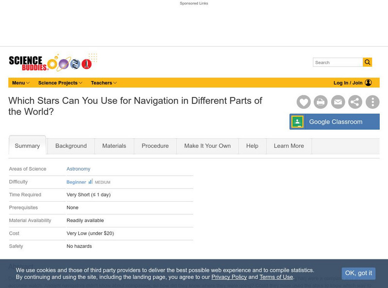 A great science project from Science Buddies that examines how ancient peoples navigated without the benefit of a GPS. Find out which stars are important in navigation in the northern and southern hemispheres. The Science Buddies project...