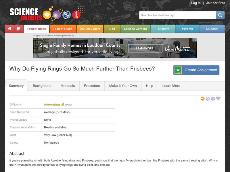 Use the instructions from this Science Buddies project to develop your hypothesis on whether flying rings fly farther than flying disks. The Science Buddies project ideas are set up consistently beginning with an abstract, objective, and...