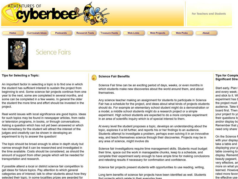 Are you, your students, and their parents wandering lost in the Science Fair desert? Here's an oasis! The Science Fair Central website provides a complete guide to the topic. There's a "Soup to Nuts Handbook" that assists the student in...