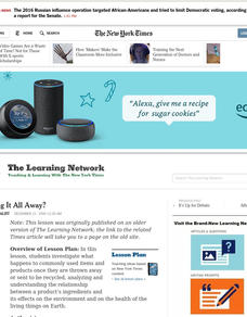 Young scholars read a New York Times article as part of their investigation as to what happens when an item is thrown away or recycled. They analyze the relationship between a product's ingredients and its effect on the Earth and...