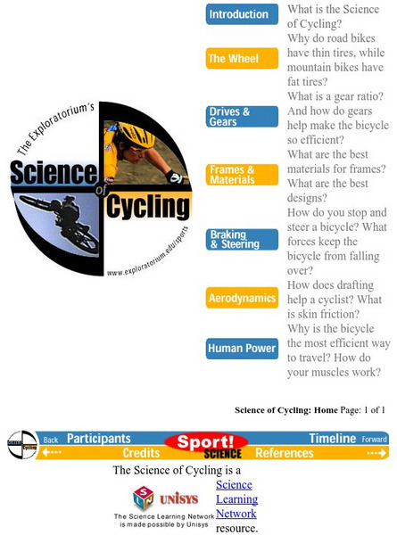 Very informative site from The Exploratorium about the science of bicycling. You can learn about the development of the wheel, how gears work on a bike, even how brakes were developed. Perfect site for research on bikes.