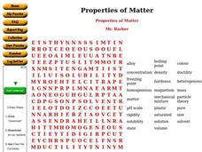 In this science worksheet, students find the words related to matter and the answers are found by clicking the button at the bottom of the page.