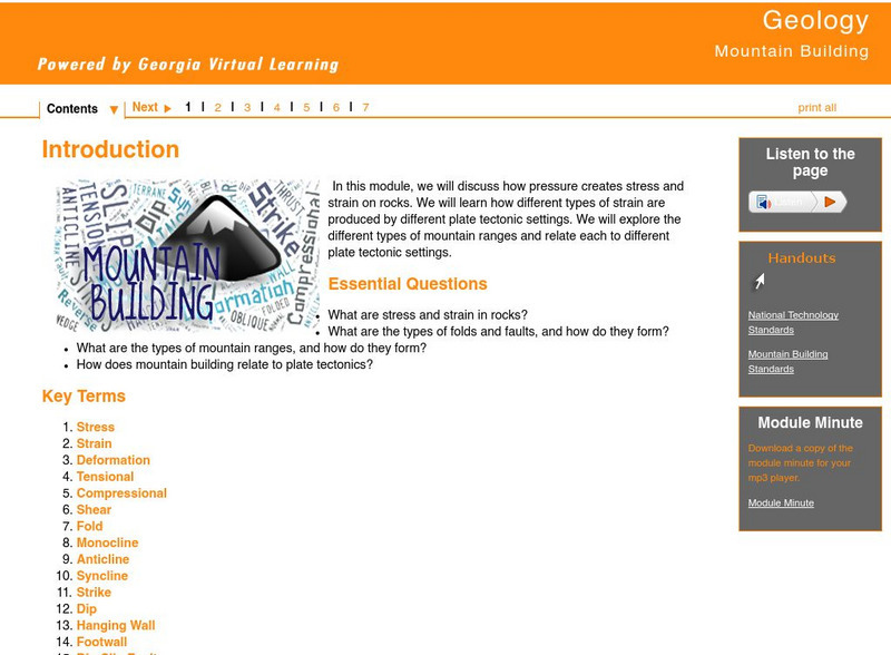 In this interactive tutorial you will learn how pressure creates stress and strain on rocks. Learn how different types of strain are produced by different plate tectonic settings, and explore the different types of mountain ranges and...
