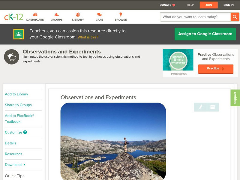 [Free Registration/Login may be required to access all resource tools.] Using observations and scientific experiments to test hypotheses.