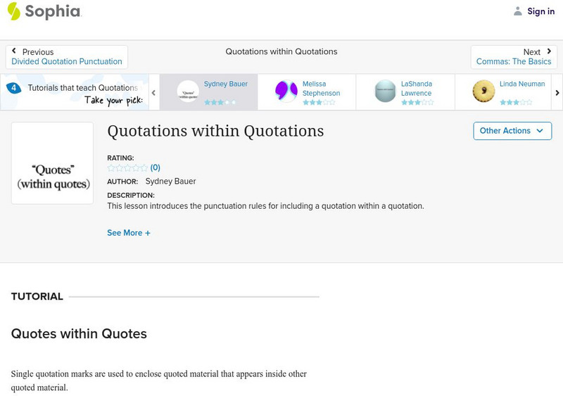 This lesson introduces the punctuation rules for including a quotation within a quotation. It is 4 of 4 in the series titled "Quotations within Quotations."