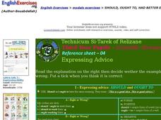 In this should, ought to, or had worksheet, students choose the correct sentence, choose the right or wrong way to write, fill in the blanks, and more using should, ought to, and had. Students complete 5 exercises.