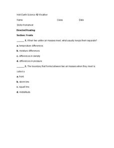 In this weather worksheet, students write the letter of the definition that best matches the term or phrase. Students answer several short answer questions as it relates to the components of weather, severe weather, and air masses....