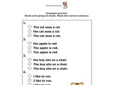 In this complete sentences worksheet, learners determine which sentence is complete. In this multiple choice worksheet, students answer five sentences.