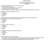 In this superior sentences worksheet, students answer multiple choice questions about parts of speech, sentences, and making sentences superior. Students complete 10 questions total.