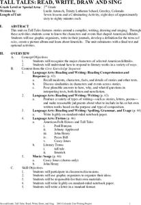 Students get to know the characters and events that shaped American folktales through writing, drawing and singing activities. Handouts and worksheets are included.