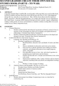 Students develop their own social studies textbook using a blank theme book as they complete activities and learning experiences throughout the year. The activities are in art, music, simulations, read alouds, shared writing and a class...