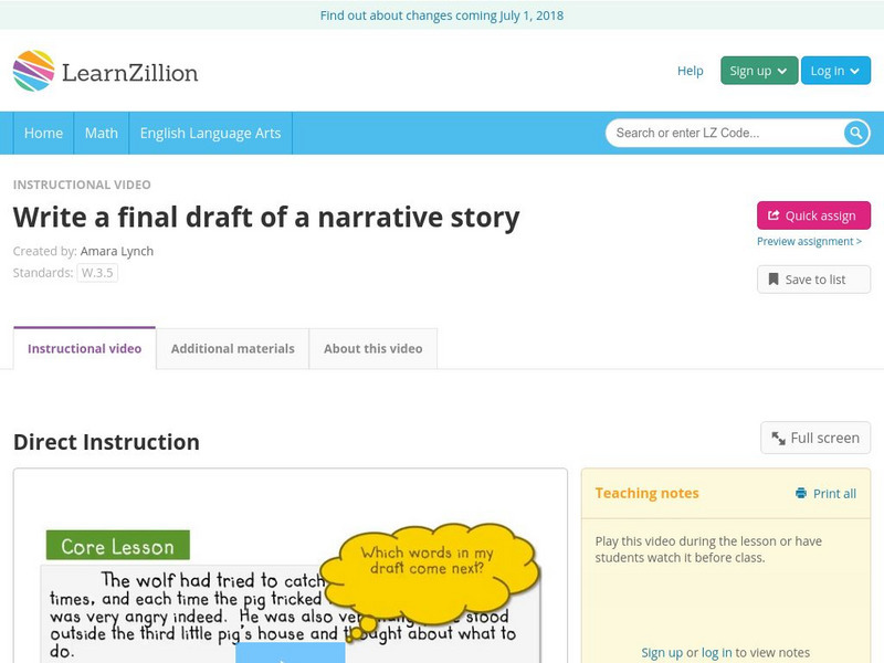 Learn Zillion: Write a Final Draft of a Narrative Story