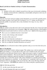 Students review the steps of the rock cycle. In groups, they identify the natural forces that cause weathering and erosion. They describe how sedimentary, metamorphic and igneous rocks might be formed in nature to end the lesson plan.