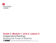 The Incredible Book-Eating Boy is read aloud to young readers, and the story is discussed. Then, the lesson goes into how to build up one's reading stamina. The class brainstorms ways that they can build up their stamina such as: staying...