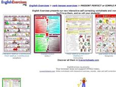 Using this 15 question activity learners practice using the past and present perfect forms of verbs. This would be a great worksheet for use with students in both upper elementary and older grades.