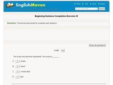 In this online interactive grammar skills worksheet, students examine 10 sentences that are missing words and select the appropriate words to complete each of the sentences and match them to the sentences. Student answers are...