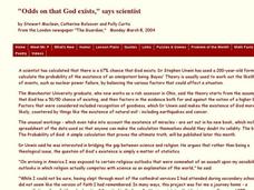 In this probability worksheet, students are presented with how a scientist calculated the chance that God exists. References to scientists, mathematicians, and books are made.