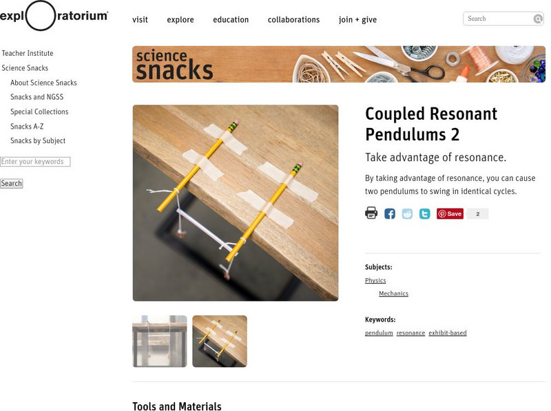 Exploratorium: Science Snacks: Coupled Resonant Pendulums 2