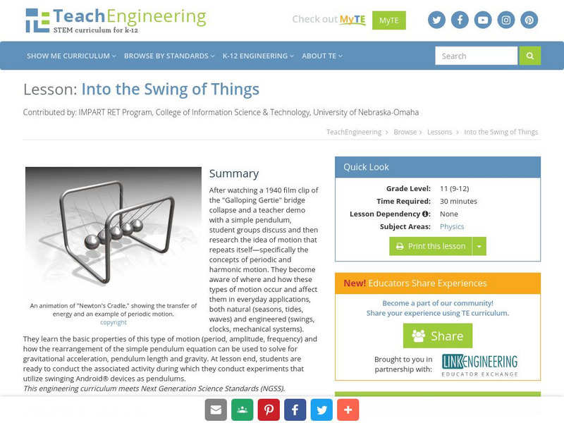 A series of graphics, downloadable animations and text describe and explain the motion of a pendulum. Some sections require an understanding of calculus.