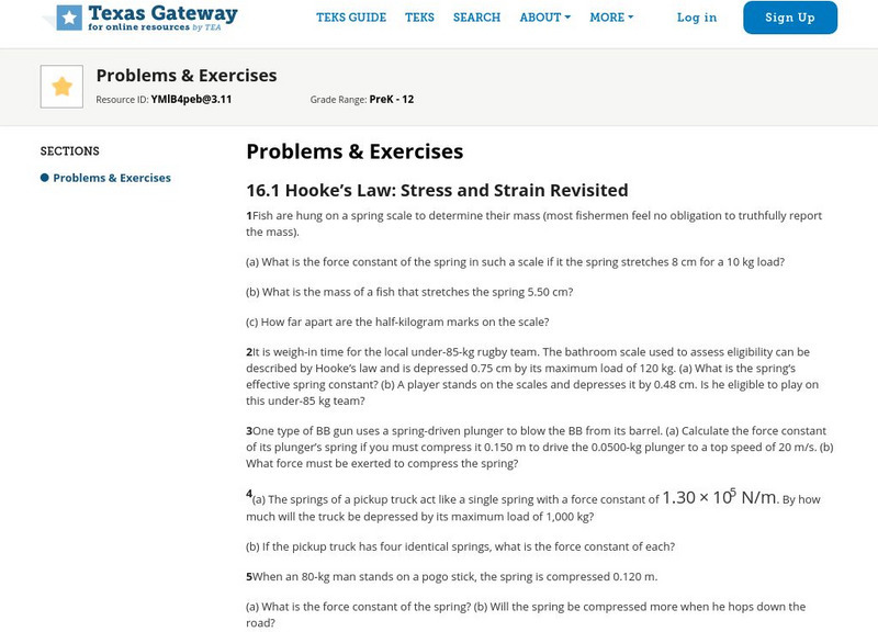 Texas Gateway: Oscillatory Motion and Waves: Problems and Exercises