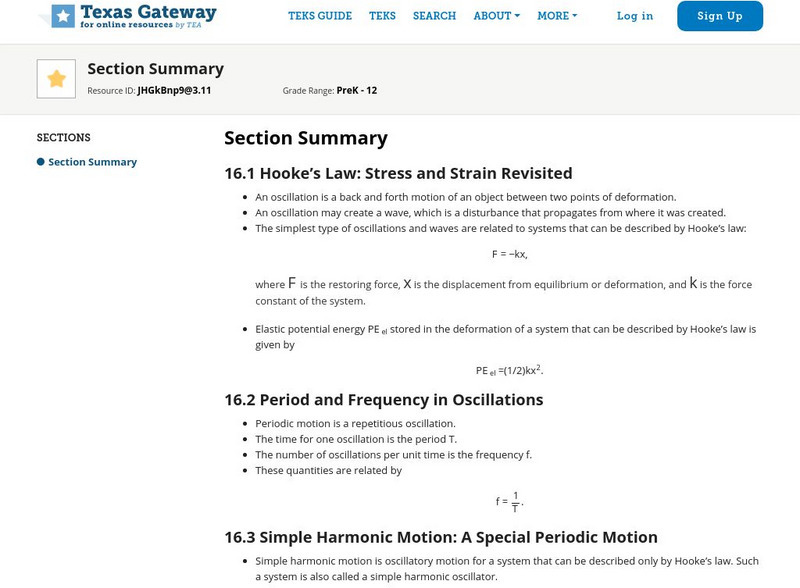 Texas Gateway: Oscillatory Motion and Waves: Summary
