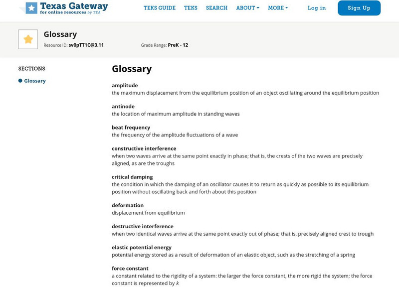 Texas Gateway: Oscillatory Motion and Waves: Glossary