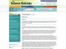 Students explain normal distribution of a measurable characteristic within a group of objects. They create two graphs (one for each type of Hershey's Kiss) with increments of measurement on the X-axes and number of measurements on the...