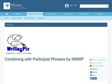 Combine participial phrases and creative writing with this lesson, which is equally helpful for writing skills and conventions. After a mini-lesson on participial phrases and reading the picture book Dancing in the Wings, pupils use a...