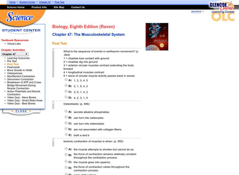 Glencoe: Biology: The Musculoskeletal System Posttest