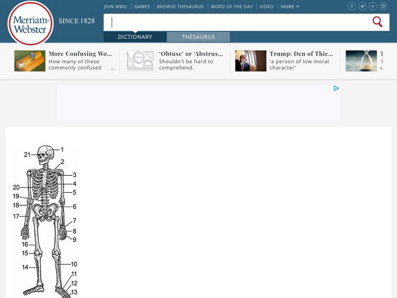 In this resource, you will access photographs of the human skeletal system. A quiz is associated with each image which has numbered labels on the skeletal parts. Create a numbered list and write down the name for each part, then check...