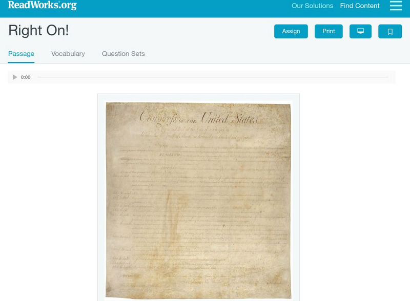 [Free Registration/Login Required] An informational text about a program called "Do Something About It" designed to teach kids about the Bill of Rights. A question sheet is available to help students build skills in reading comprehension.