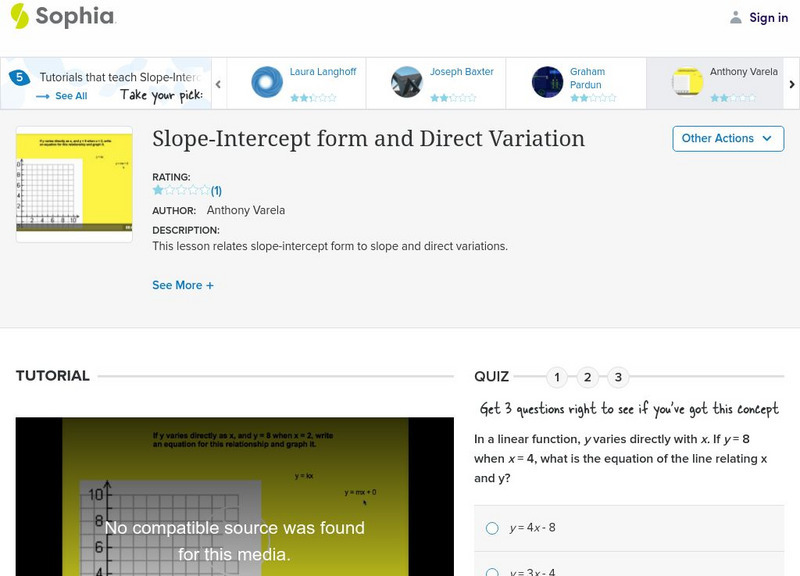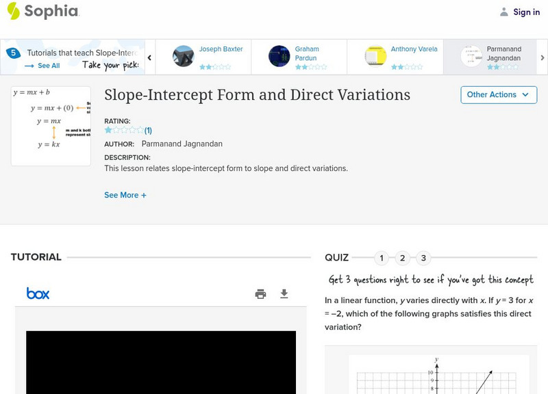 Sophia: Slope Intercept Form and Direct Variation: Lesson 4
