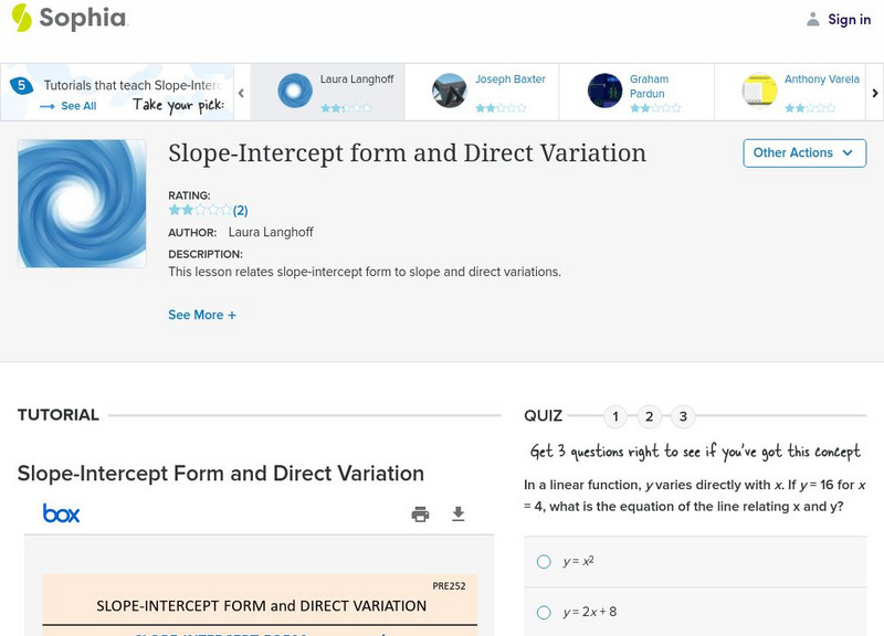 Sophia: Slope Intercept Form and Direct Variation: Lesson 2