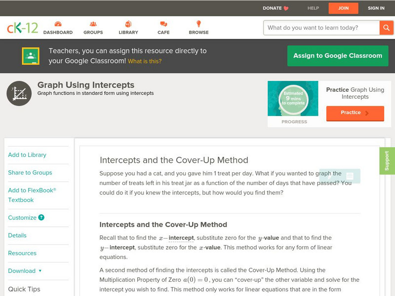 [Free Registration/Login may be required to access all resource tools.] Learn how to find intercepts using the Cover-Up Method.