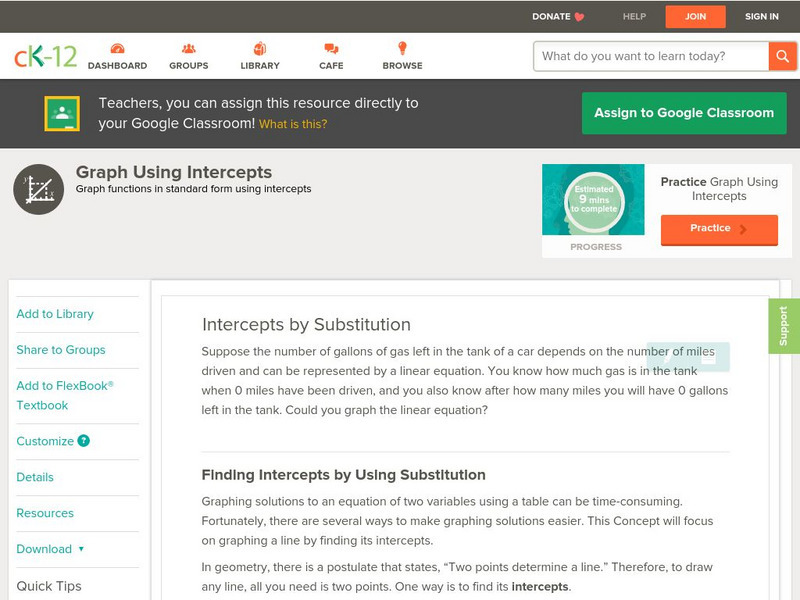 [Free Registration/Login may be required to access all resource tools.] Identify x and y-intercepts when problem solving.