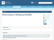 Sixth graders explore language arts by writing dialogue. In this vocabulary choice lesson, 6th graders identify synonyms and the importance of using a thesaurus while writing dialogue in their own original work. Students revise and edit...