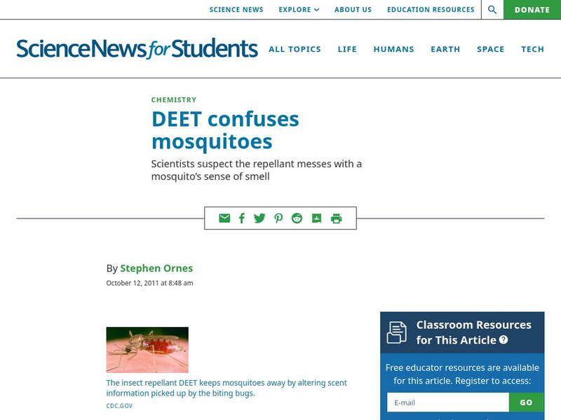 Discusses why DEET insect repellant is effective including research showing how a mosquito's sense of smell is confused by DEET, so it doesn't recognize a potential food source such as human skin.