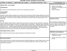 Students participate in activities examining the Bill of Rights. They discover the different articles and Amendments.